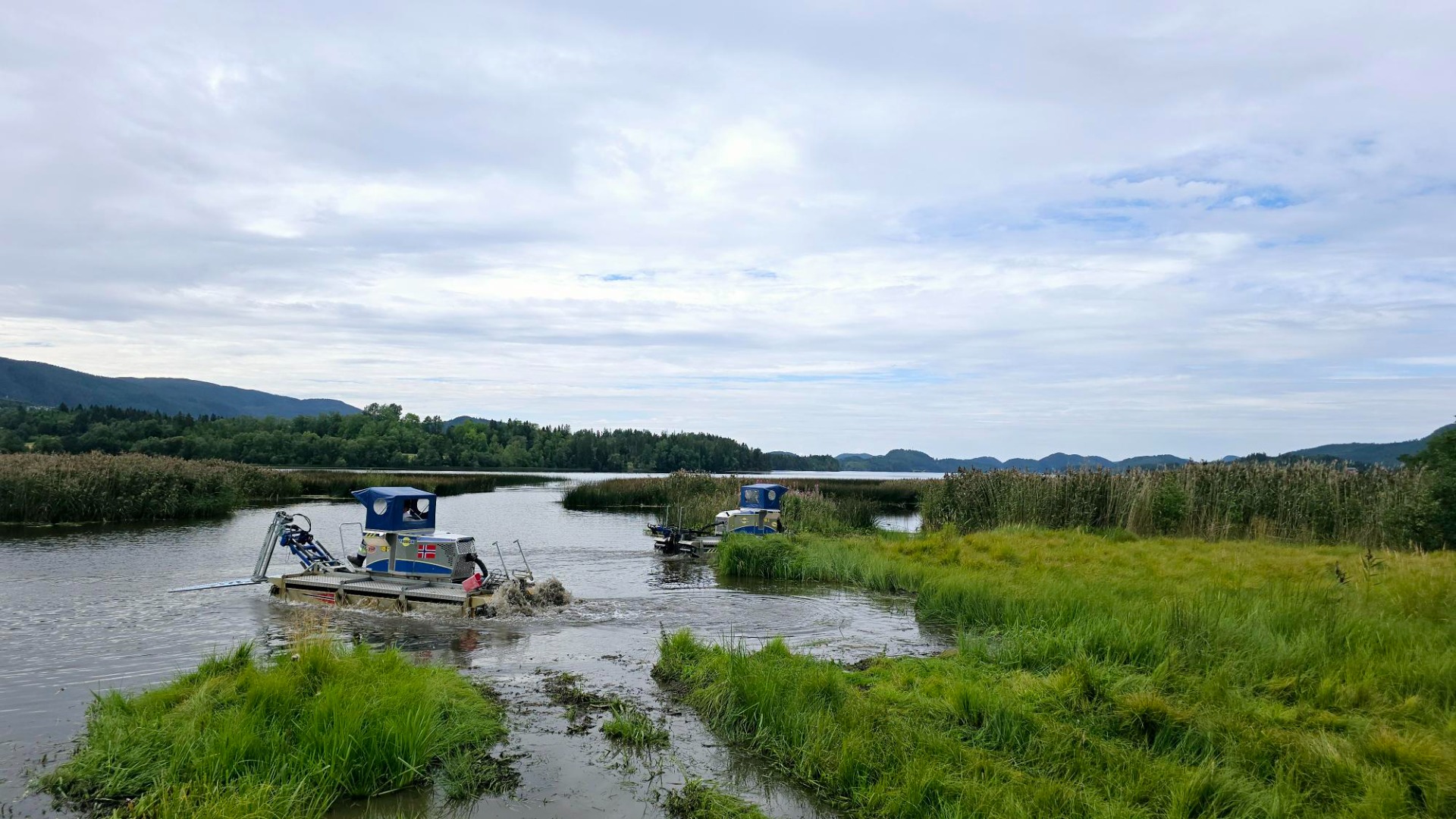 Med gravearm på amfibiemaskinen kan vi rense kanaler, fjerne sedimenter og utvide vannløp uten behov for tunge maskiner på land.